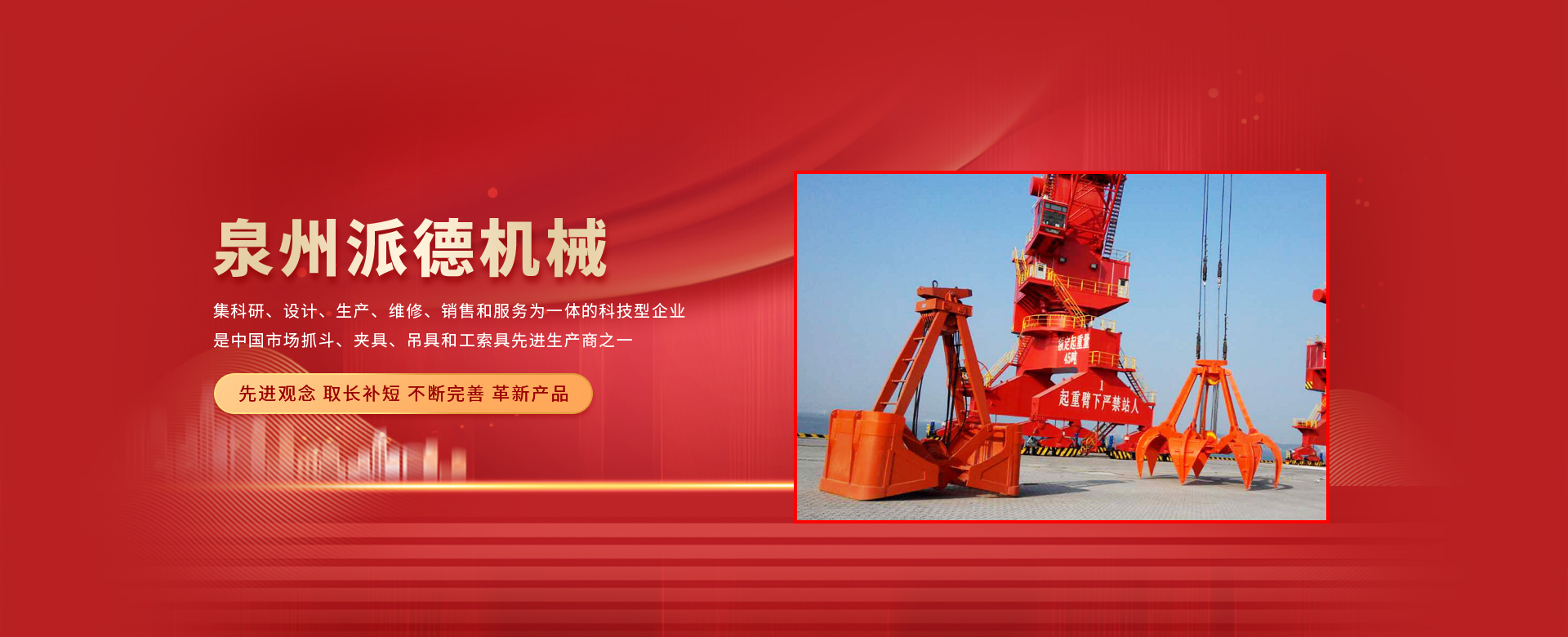 泉州派德機械有限公司成立于2012年5月,位于全國文明的古城福建泉州,公司擁有各類型專業(yè)員工82人,其中高級工程師1人,工程師4人,助理工程師5人,是一家集科研、設計、生產(chǎn)、維修、銷售和服務為一體的科技型企業(yè),是中國市場抓斗、夾具、吊具和工索具先進生產(chǎn)商之一。產(chǎn)品采用國內(nèi)外先進的設計方案、技術(shù)規(guī)范、制造過程、工藝流程和服務,憑借在抓斗、夾具、吊具和工索具領域的超前設計理念和成熟的技術(shù)、工藝和管理,在抓具領域迅速崛起。